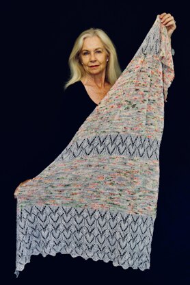 The Shawl incorporates the stunningly beautiful lace design used in my Colour Me Lacey Sweater pattern. The shape of The Shawl is a right angled triangle. The construction commences at the wide end of the shawl where the large lace panel is, using a provisional cast on. This cast on allows for a beautiful scalloped shape at the bottom edge of the shawl. The triangle shape is created by decreasing at the end of every second row.