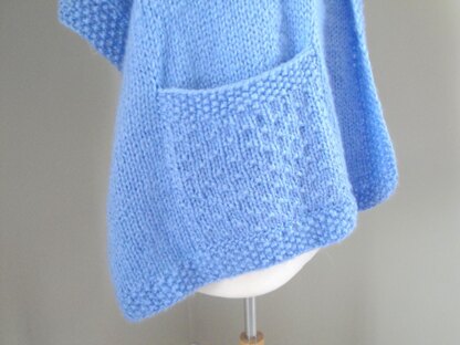 A cozy rectangle shawl wrap with handy pockets. This comfortable style is sometimes called a reader wrap.