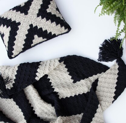 Geometric shapes and lines that are reminiscent of that Scandinavian style in combination with that signature boho tassel look, make this throw pillow and lapgan corner to corner crochet set perfect for that outdoor lover and carefree wander! It makes a great addition to any style décor or for keeping the chill off while enjoying a campfire and the stars! After creating a mini version of this symmetrical pattern with the throw pillow, diving into the lapgan pattern will seem like a breeze! This pillow pattern is beginner friendly and the lapgan is beginner-intermediate. Sizes: Pillow = 12" x 16" & Lapgan = 40" x 50"