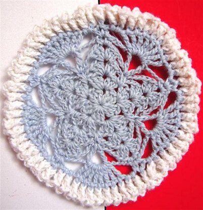 An ornament with star in center for Xmas, continuous crochet without sewing. This is stiffened by spray starch, it can be wash and re-starch. Making it quickly and simple. Hope you enjoy it :)