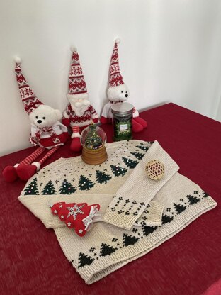 Xmas Tree is worked seamlessly from the top down. Short rows are added to shape the neck as the stranded yoke is worked. The sleeves and body are separated and worked in the round.