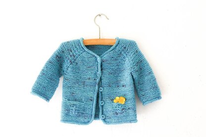Knitted in one piece, from the top down, the body is worked flat while the sleeves are knitted in the round. Only two little seams are needed for the pocket sides.