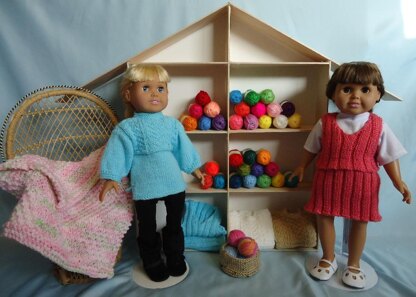 Yarn Shop Ladies with Basket and Afghan - Knitting Patterns fit American Girl and other 18-Inch Dolls