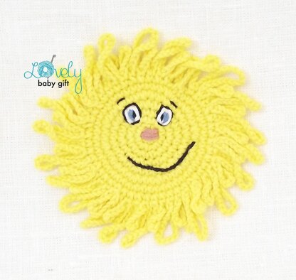 Pattern can be made with sport or worsted weight yarn. The finished applique size is about 4.7 inch (12 cm) when done with sport weight yarn and size C crochet hook (2.75 mm ). The size of sun may vary depending on the size of hook and yarn you use.