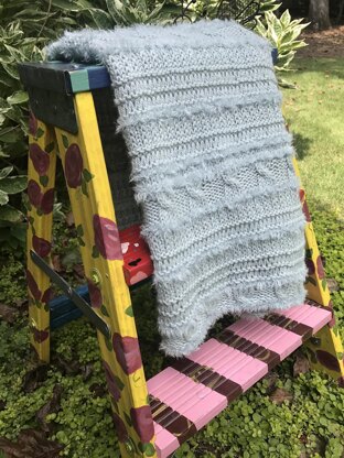 - A boho baby blanket with a multiple of stitch patterns and a soft furry yarn used as an accent Sample was done in Weepaca by Big Bad Wool