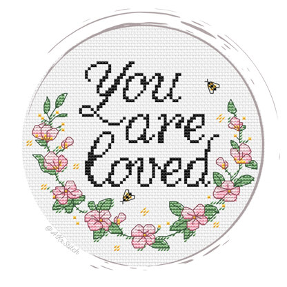 You are loved Counted Cross Stitch Pattern and PDF Digital Download. The stunning floral design will make a perfect wall decoration for a nursery or craft room. Motivational and inspiring cross stitch pattern "You are loved". Fits perfectly in a 6-inch hoop for display. Easy to follow pattern suitable for beginners.\n\nStitched on Aida 14ct: 14 x 12 cm (6 x 5 in)\nDMC Threads: 7 solid colours (0 blends)\nUsed stitches: full cross stitch, half cross-stitch, backstitch\nSkill level: Easy / Beginner\nStitch time: 35-45h\n\nCross stitch pattern in PDF, Instant Digital Download includes: 1) cover page with preview; 2) instructions, symbols key and shopping list (DMC thread colour numbers and estimates, as well as fabric options); 3) two black and white charts, with and without backstitch; 4) two colour charts, with and without backstitch; 5) single-page file for Pattern Keeper (available on request).\n\nPlease note: This pattern is for personal use only - not for commercial use. You can't make copies of our charts to distribute (either as PDF or printed versions) but you can definitely sell your finished cross stitch work.