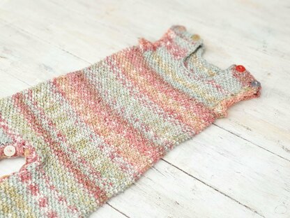 Young Ones is an easy to knit baby onsie or overall. Seed stitch looks great on babies and is amazingly stretchy in all directions, which makes it perfect for overalls. This overall pattern features a buttoned crotch as well as shoulders, for easy dressing and nappy changes. Sizes: 0-3 months, 3-6 months, 6-12 months To fit chests of about 38- 43- 48 cm or 15- 17- 19" Materials: DK Yarn King Cole Drifter Alabama 1-2-2 balls,100 g balls with 300 m ( 329 yds.) Tension/ Gauge 22 sts and 28 rows to 10 cm or 4 " square in stockinette st. The overalls are worked from the bottom up. The legs are worked flat, and then the work is joined in the round for the body, then separated again for front and back.