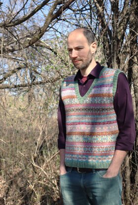 Your Fabulous Resources is a pattern for a Fair-Isle style slip-over/tank/vest. It is worked in the round and from the bottom up. The neck and armscyes are worked with steeks and finished with ribbed edges.