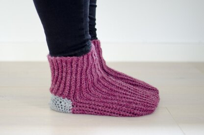 This easy crochet pattern is worked sideways, and can be made for women’s shoe sizes 4.5 through 10.
