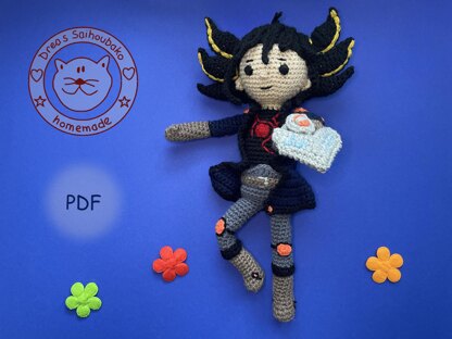 With yarn length 150m/50g this doll is about 30 cm high.