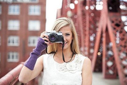 [1]: Knit from the top down (upper arm to finger edge), the Yvonne armwarmers work up fast using simple stitches. Pattern is established by first working flat (in rows) and then transitions to working in the round. Garter stitch runs along the length of these gloves breaking up the otherwise smooth stockinette piece.