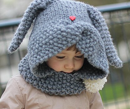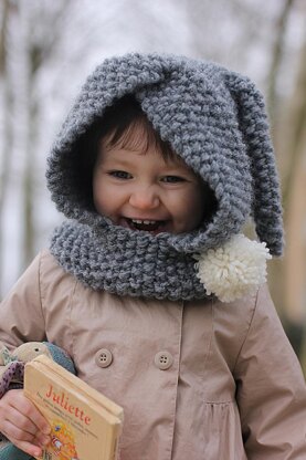 This cute and fun one-piece rabbit hood is designed to keep out cold and blustery winds. It is an easy, quick knit perfect for a weekend project and for gift giving. A combination of seed stitch and stockinette creates a textural fabric with beautiful stitch definition on super bulky yarn.