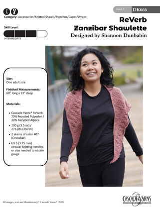 Zanzibar Shawlette in Cascade Yarns ReVerb - DK666 - Downloadable PDF is a free Intermediate Knitting pattern by Shannon Dunbabin, available as a Downloadable PDF and includes instructions in English. Super fun to make, this pattern could be your next masterpiece!