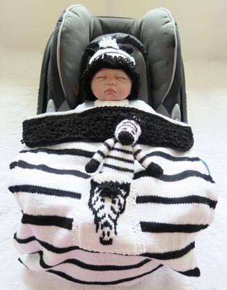 Zebra Baby Car Seat Blanket with separate Hat & Toy