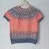 This fun crop top is designed for the colorwork lovers! Knit top down, with colorwork adorning the round yoke, hem, and even a bit on the sleeves. It’s perfect for spring and summer and a nice layering piece for the cooler months.