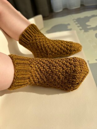 The Zemgus socks are great baby socks with a wonderful texture, that are knited top down and includes german short rows. These beautiful socks are easy adjustable for leg.