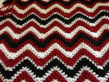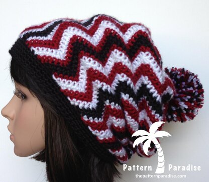 I love chevrons and this is a twist on the traditional horizontal view! The hat is designed to be adjustable (you decide where and when you change colors). It is an easy stitch repeat that can net endless possibilities. The crown pulls into a radiating "lightening" design! I added the pom pom for a little extra fun too!