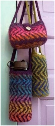 These bags use one solid yarn contrasted with one self-striping yarn.