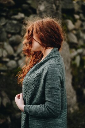 Expect the unexpected with this cardigan that combines comfortable familiarity with delightful detail, exceptional warmth with beautiful drape, functional design with luxurious beauty. The oceanic colorway evokes images of the deep even while your feet are planted on terra firma, whether you’re striding purposefully in town or wandering aimlessly through the countryside.
