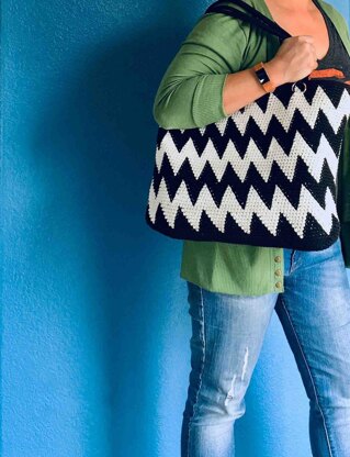 This is a very simple crochet zig-zag pattern for a tote bag. This bag will serve as an easy carryall…. running errands, beach, swimming pool, and most especially WIP-on-the-road. Keeping it casual, fun and practical with a pattern that looks great on any color and will not go out of style. Crocheted in Bernat Maker Home Dec yarn, made of 72% cotton and 28% nylon (shirt yarn) so it's nice and sturdy. Crochet hook = 5.0mm H/8 Size = 14" x 20" Instant PDF download. The pdf file includes the chart pattern and tons of pictures and instructions.
