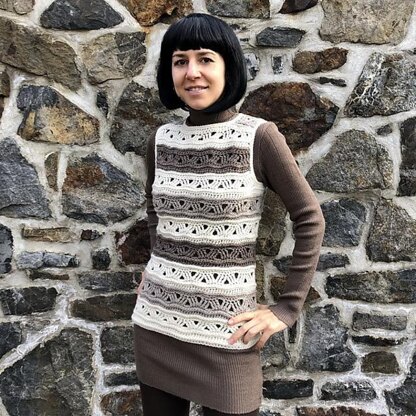 Such playful eye catching top is a fun to make and pleasure to wear! You can make it cropped or high-hip long, and wear as a tight fitting tank or a classic vest with suggested positive ease of 4” (pictured as a high hip length with zero ease).