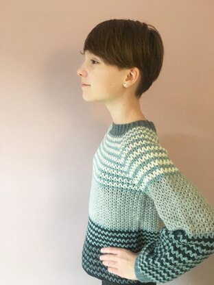 The pattern comes in sizes 4 (6) 8 (10) 12 years and the sweater is designed to be loose fitting (measures approximately 7 cm more than actual chest circumference).