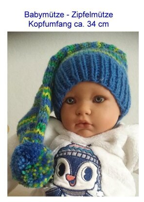Niedliche Zipfelmütze für Ihr Baby, Kopfumfang ca. 34 cm . Super schnell gestrickt und für Anfänger geeignet. Material: