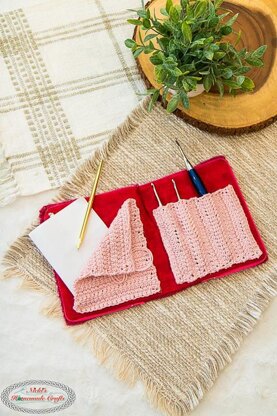 This easy crochet hook case with zipper and pockets is made without sewing at all. It includes a plastic canvas and a small piece of fabric for stability. Video Tutorial is provided also.