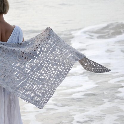 Zirka is a triangular shawl worked from the bottom up in the filet crochet technique. It has no obvious right or wrong side and can be made to any size.