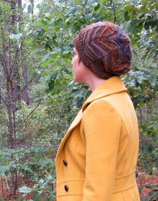 Zoey Star Beret is a slouchy beret worked in concentric stars. The beret is worked in the round from the center out on double point needles. Using a self striping yarn with long color changes and adding purl ridges create bold stars.