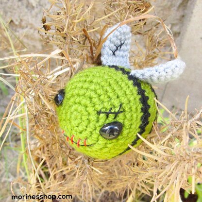 ZomBee is based out of my first amigurumi design, Heimlich the bee, found free on by blog. The name comes from merging Zombie Bee (what I initially wanted to call it). ZomBee has a much better ring to it, don’t you think?