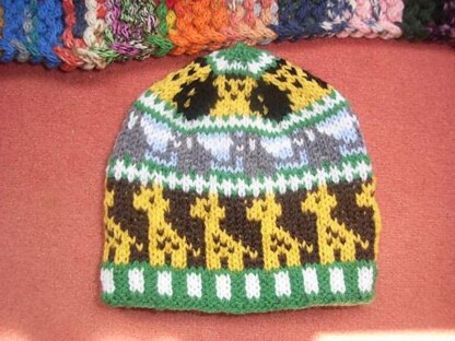 August, Holidays! The perfect time for a trip to the zoo! And here is the matching kids beanie (suits baby to toddler). I chose the most popular animals.. giraffes, elephants and a little lion. More animals would not have fit on the hat :) The bigger version also features a band of trees (which can not be seen in the picture). Picture shows size XS.