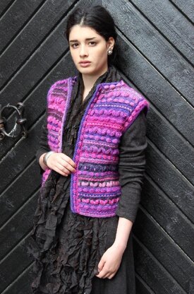 MATERIALS 5 (5, 6, 6) balls of Wisdom Yarns Poems (100% wool; 109 yds/100 m, 1.75 oz/50 g) in colorway Sweet Pea #598 (A)