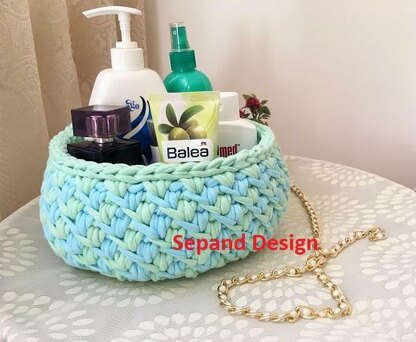 Working with spaghetti yarn is a great pleasure. Isn’t it wonderful to make a basket just within 2-3 hours?