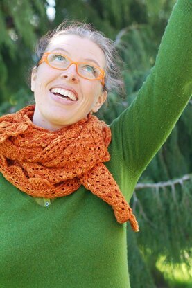 This pattern includes 2 versions - the fully patterned shawl, in worsted-ish weight yarn (the DK yarn used in the sample appears/acts more like a worsted weight), and a simple variation with lace patterns only around the edges and in the wedges, stockinette stitch filling the body, which is for any weight yarn and custom sizable.