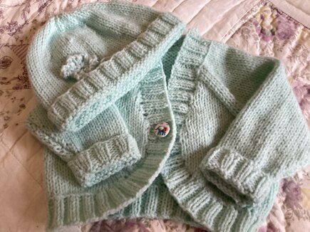 I have made several garments using gender neutral colours. The flowers have not been attached just in case it is another boy!