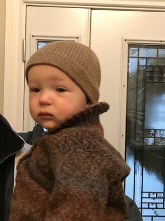 Notes: The final result was great. After washing, I stretched it to the desired size over a balloon. The fit needs to be precise, since there's no ribbing. The designer includes instructions on how to modify pattern to work for various yarns and needle sizes.