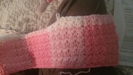 I had these in my stash, I found them on the clearance rack of my local JoAnn store a few years ago, loving the softness and squishy feel to the yarn with no use in mind when purchased all the available colors. Later on I found the remarkable gingham pattern and knew this would look so good. Well much to my dismay I failed to read the pattern thoroughly before starting and failed to see I need 2 times the amount of the lighter color yarn for a proper gingham effect. I completed about 3/4 of the blanket (2nd pic)and ran out of the TuTu color. Thinking I could find more I went to the internet only to find it was not available anywhere at all, I asked my sister to check on Ravelry Stash for sale and there was none to be had. My lesson learned. I frogged the entire blanket and started over using the darker color in place of the lighter one as I had 6 skeins of the Rosebud. Well the finished product is not quiet gingham (3rd pic), it is more checkered. I still love it though:)
