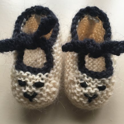 For these, I followed the basic pattern using Feather (828) as the main shade, then I used Smoke (831) for the straps and to embroider a little face on the toes. A really easy pattern to follow and great little baa-tees!!