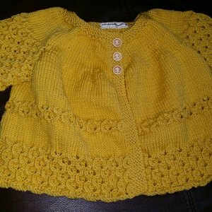I knitted the leaf cardigan some time ago but it came up a bit bigger than I anticipated and the baby was smaller....so the cardigan now fits her perfectly and I thought an autumnal dress would look great under it. The colour is washed out in the photos but is a lovely sage green.