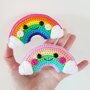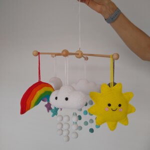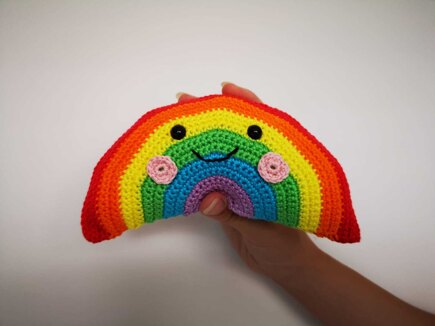 I want to crochet different types of weather to make a baby mobile. I made this rainbow bigger than the original pattern by doubling the width of each colour.