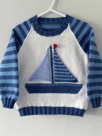 Had some blue shades of King Cole dk and thought I’d make a nautical jumper.