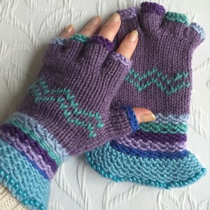 Knitting is one of my favourite things, (alongside sewing, gardening & baking - as long as I can be making or growing something, I'm happy). I like to knit small items, especially mittens & gloves & I'm trying hard to complete one project before beginning another four, which is what usually happens! Too many lovely yarns out there & plenty of ideas but not enough hands to knit with!