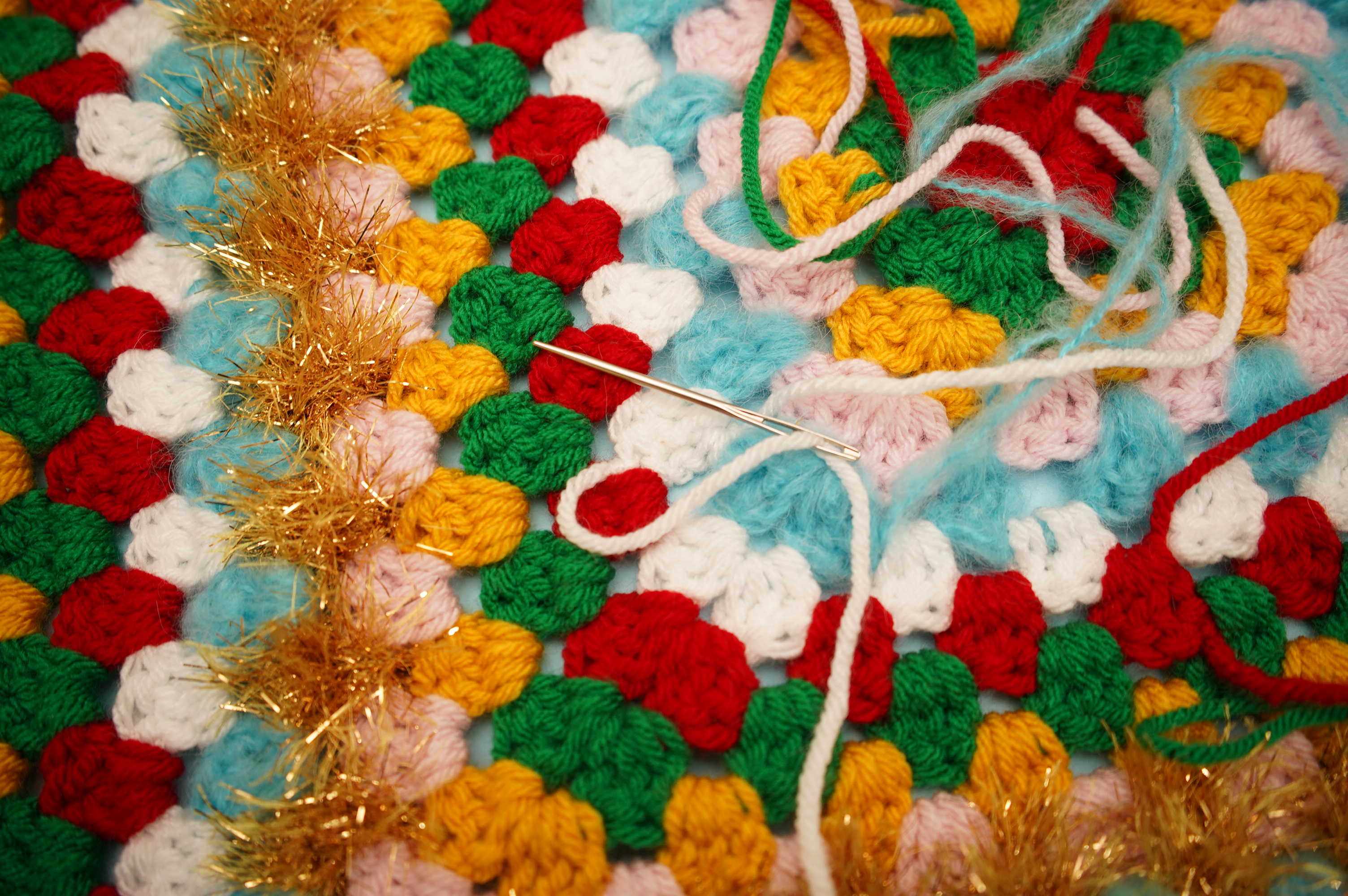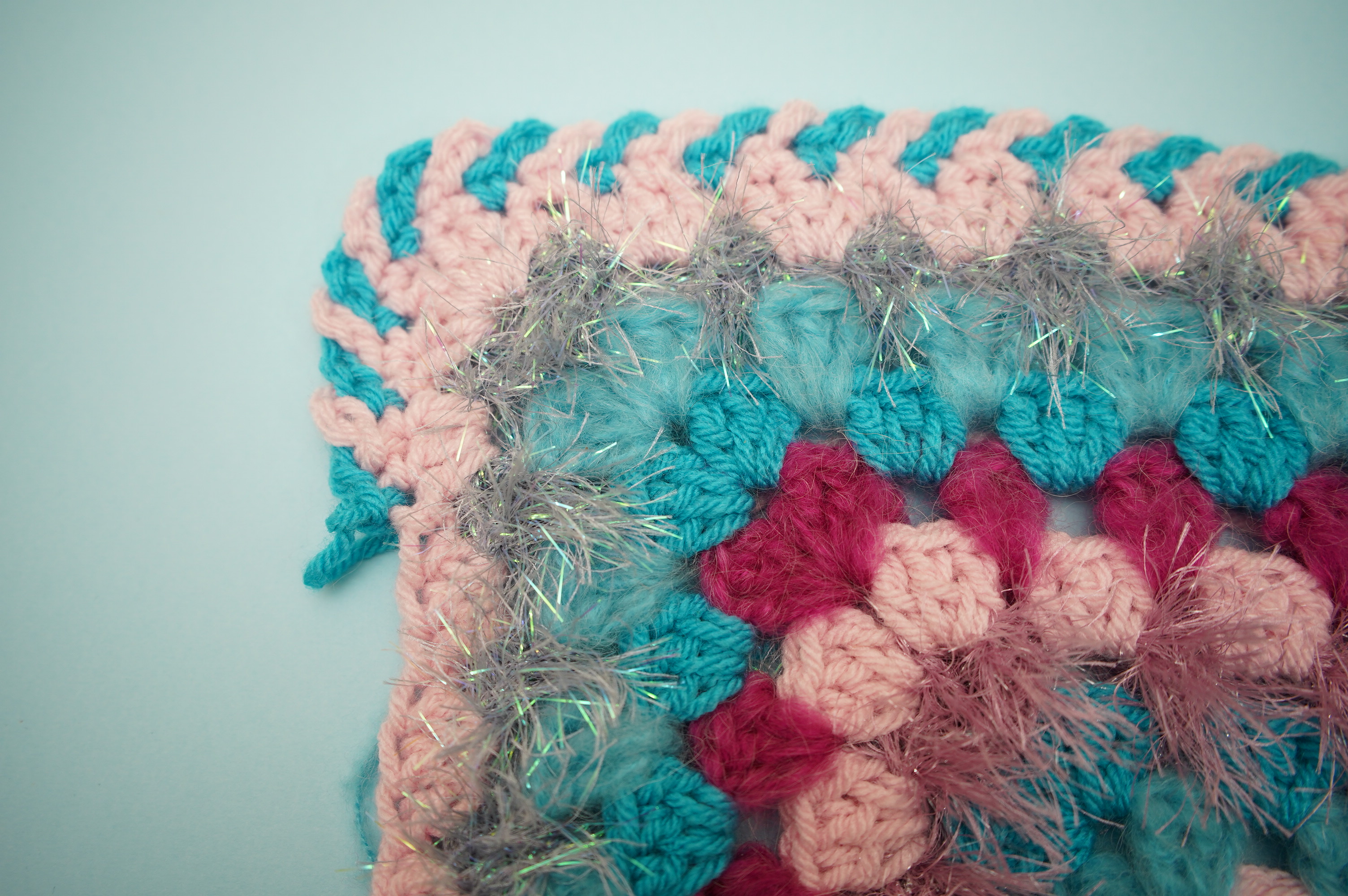 Keep working rounds until your Glitzy Granny Square is as big as you want it to be! Remember, when you work with tinsel or fur yarns, you can't really see the stitches - so don't worry!