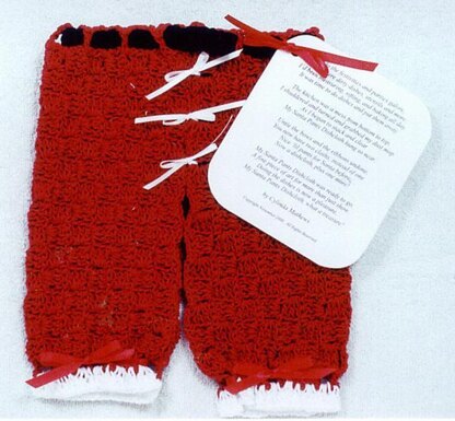 These adorable crochet Santa pants are made from 2 dishcloths with crochet on the diagonal. Complete with "look-a-like belt" and cute bow ties, this project is relatively quick to work up and includes a cute little poem. A must for your kitchen this season! Make up Leprechaun Pants by changing the color with an additional poem for St. Paddy's included!