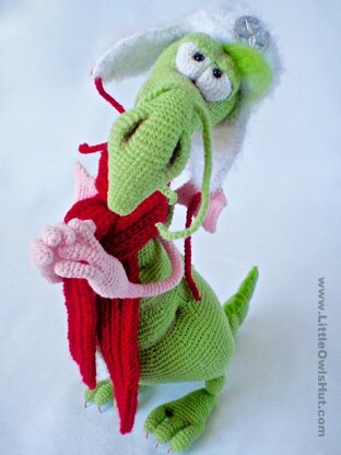Materials and tools Yarn – weight - Light Fingering / 3 ply (Yardage -237 yards (217 meters), unit weight - 50 grams (1.76 ounces)) I used - Vita HAWAII (55% cotton, 45% acrylic) 2 main colors – Green (main color) - approx. 250 m (273 yards) Pink (hands and wings) - approx. 50 m (55 yards) • Some white yarn for eyes (it should be a bit thinner than the main one). • Hook matching the yarn. I used 1 mm (UK steel - 6 ½, US steel - 12) for the main parts and 1.5 mm (US steel - 8, UK steel - 4 1/2) for the hat Please note that you should use much thinner hook than stated at the yarn label. • Stuffing: hollofiber or padding polyester • Copper wire with plastic covering for the frame (you should be able to bend it with hands but it shall keep the form). Consumptio