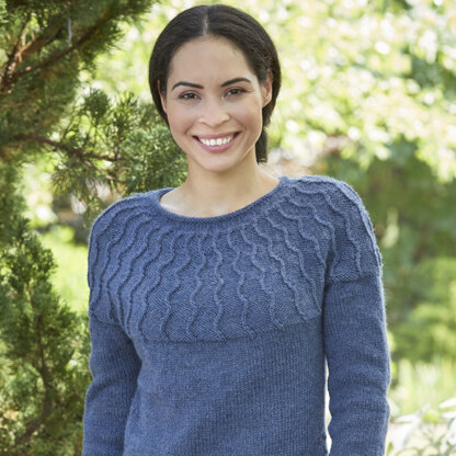 Valley Yarns Wheatley is a striking women’s pullover with a sinuous textured yoke design knit in Northampton. Relaxed positive ease makes it a comfy weekend choice. The body and sleeves are knit in the round from the bottom up separately, then joined. The yoke is then worked in the round to the neck with decrease shaping in a textured stitch pattern. Valley Yarns Northampton is a workhorse yarn that you’ll come back to time and time again. The Vining Rib patterns are charted and written out.