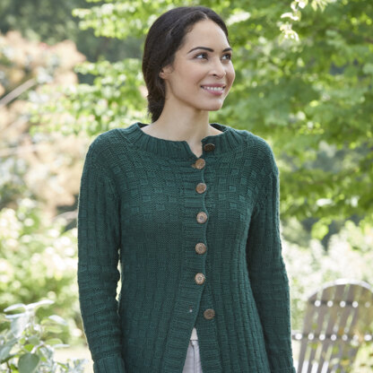 set-in sleeves, optional patch pockets, and an allover check stitch texture