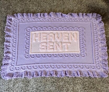 HEAVEN SENT baby blanket was made with Loops & Threads Snuggly Wuggly 1800 yards - Soft Lilac 600 yards - pink Hook: F