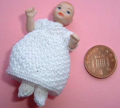 1/12th scale pattern for a Baby dress and tights for a dolls house doll.